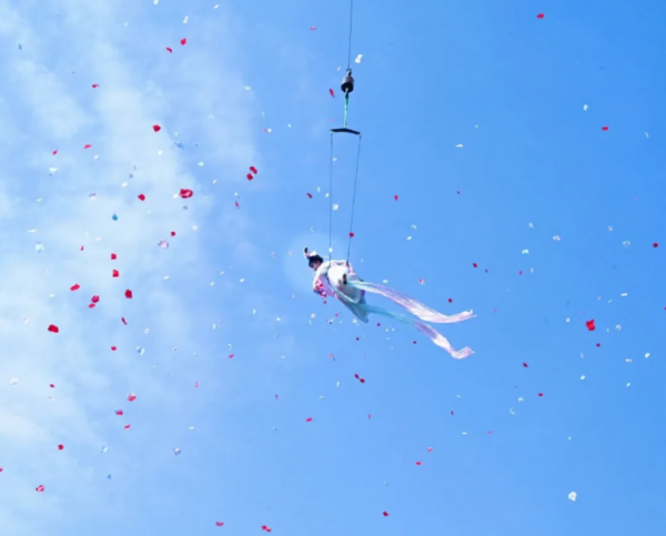 “天女散花” 伴著高空雜技從天而降