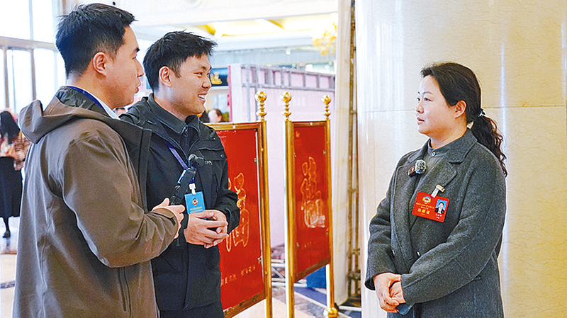 政協(xié)委員在接受記者采訪。記者 張建 攝