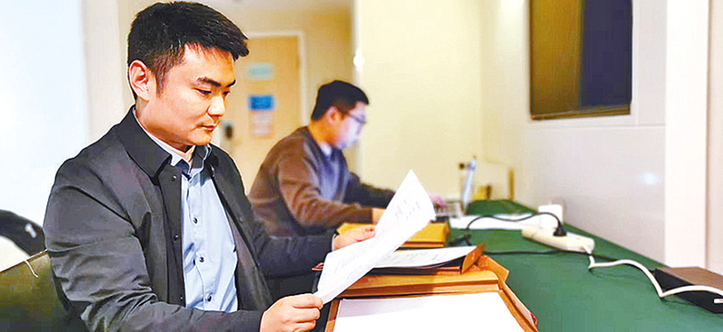 提案組工作人員預(yù)審提案。記者 張建 攝